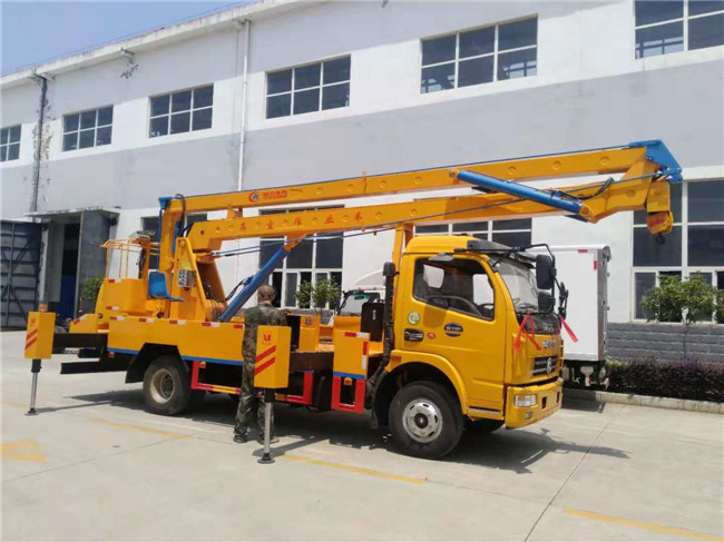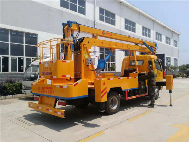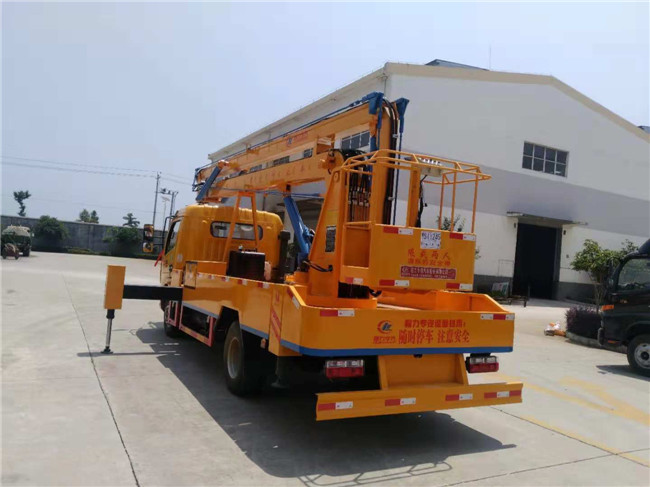 ★18米高空作業(yè)車隨車安裝四個(gè)液壓支腿,以保證整車在操作時(shí)的穩(wěn)定性與安全性。高空作業(yè)車選裝吊鉤,吊鉤吊1-1.5噸。高空作業(yè)車均可上下操作,360度全方位旋轉(zhuǎn),安裝手油門。
